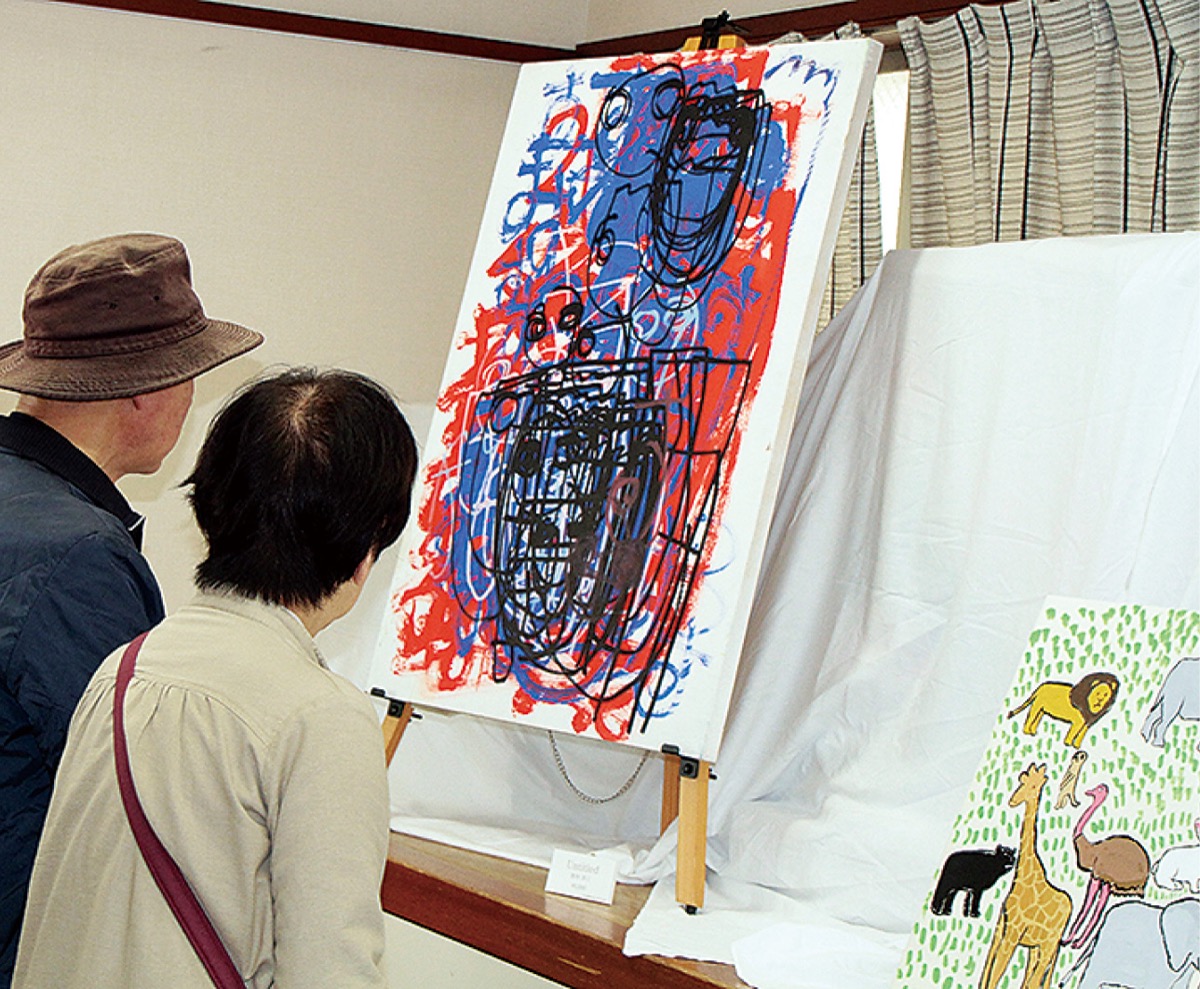 一方、自治会館では、パンの出張販売や地元野菜・花苗の販売、ひと休みコーナー、リラックスマッサージを設け、社会福祉法人みのり会より提供されたパラアート作品が展示された。