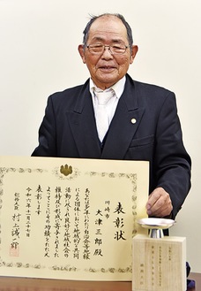 菅生ヶ丘自治会の大津三郎会長(85)がこのほど、長年にわたる自治会活動の功績が認められ総務大臣表彰を受賞した。「地域で活動されている方々、これから始められる方々の励みになれば」と受賞を喜んでいる。