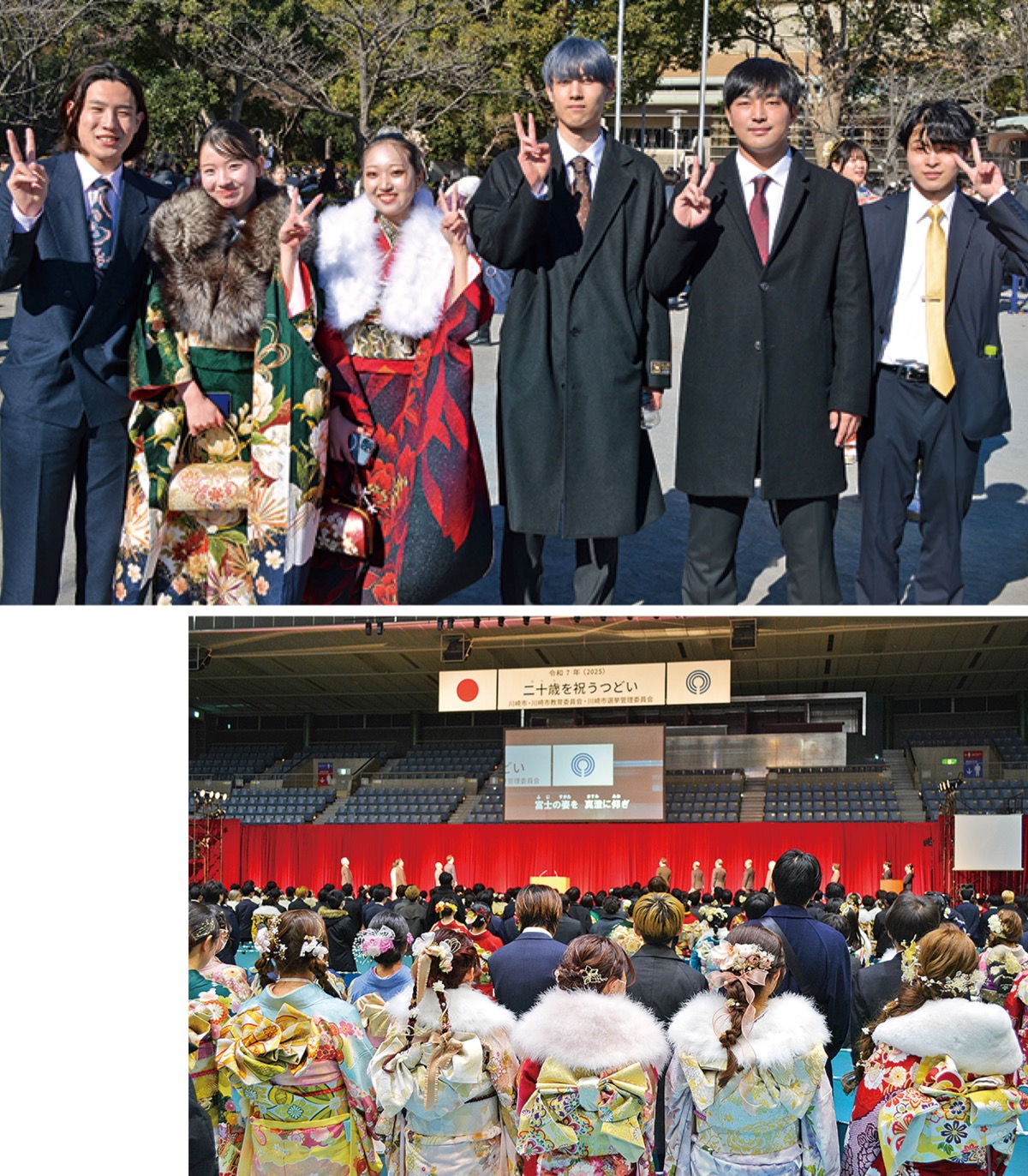 式典では、事前応募で選ばれた代表者がスピーチ。宮前区の竹内渚夏(なな)さんはバレエに打ち込んできた日々を振り返りながら、「今は初心に帰り、踊ることが楽しく充実している。壁にぶつかったときには、原点回帰することが大切」と自身の経験を語った。野村亜未さんは「人とのつながりに支えられこの場に立っている。未熟な部分はあるが、その歯がゆさをバネにして、自分を裏切ることなく胸を張り進んでいきたい」と意気込んだ。