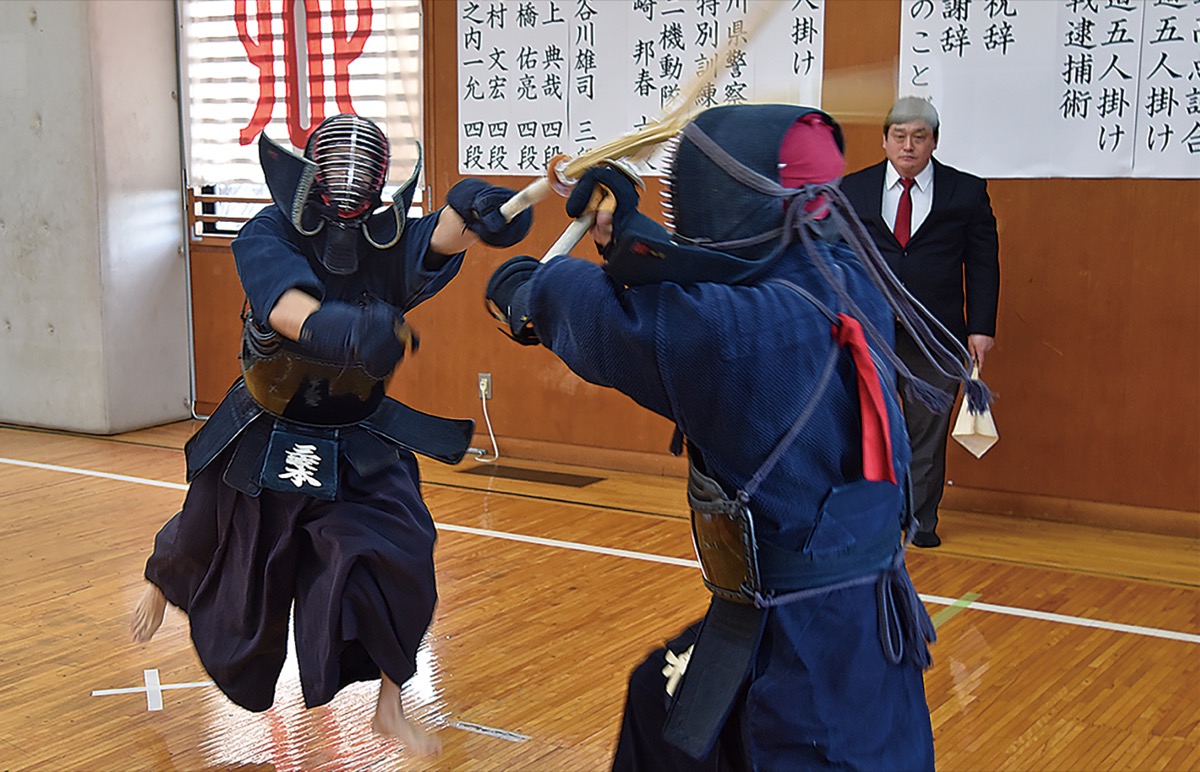 会場には警察関係者ら約110人が訪れた。署員らは、真剣勝負で試合を行い、一本を取ると、会場から大きな拍手が送られた。不審者に遭遇した場合など、実践逮捕術も披露した。