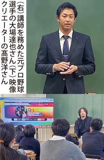 川崎出身の元プロ野球選手で、現在は鶴見大学(横浜市)で野球部のコーチを務める大場達也さん(35)は、4つの「伝えたいこと」に沿って話を進めた。母子家庭で育ち、アルバイトで家計を支えながら川崎市立川崎高校で野球を続け、プロ野球選手を目指した経緯を説明し、「夢はみるものではなく叶えるもの。叶えるには何をすべきかを考えながら過ごしてほしい」。また、「プロを目指して」という祖母の願いを胸に、プロ野球に挑戦したことにも触れ、夢が自分のものから「みんなの夢」へと広がったことが、挑戦の原動力になったと語った。最後に「壁にぶつかった時に今日の話を思い出し、乗り越えるヒントにしてくれたらうれしい」と話し、満面の笑みで授業を終えた。