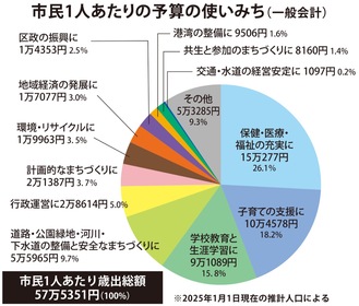防災・減災、暑熱、防犯などの安全対策では、災害時のトイレ対策に2億2千万円を計上。携帯トイレ約95万枚を公的備蓄として新たに用意し、避難所や市立学校に2日分の備蓄を確保する。全避難所へのマンホールトイレ整備に向けた検討も進めていく。