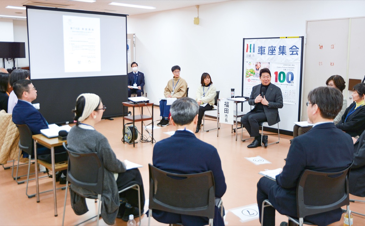 市民と福田紀彦川崎市長が直接対話し、市政の課題解決に向けて意見交換する車座集会が2月24日、宮前区役所4階大会議室で行われた。
