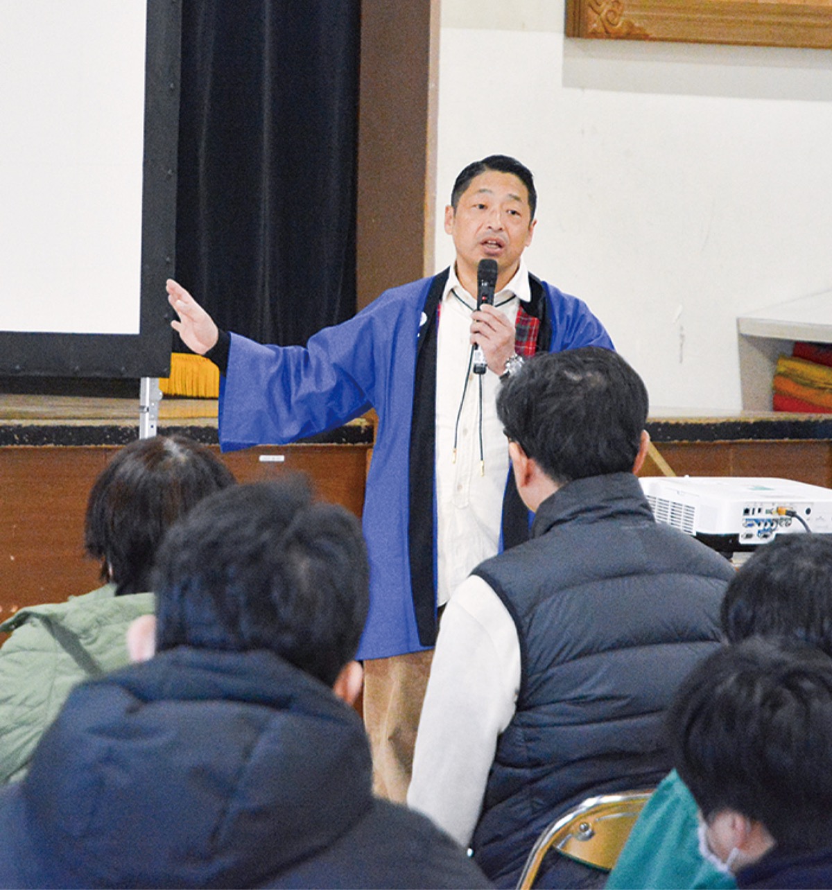 同講演会は、阪神淡路大震災から30年にあたり企画された。講師の安田さんは、兵庫県西宮市出身で二十歳の時に被災。震災で直面した親友の死が、芸人を志す大きなきっかけになった。「しばらくは震災について話す気になれなかったが、死んだ時と忘れられた時に『人は二度死ぬ』と教えてもらって考えが変わった。自分でも二度目の死を食い止めることができると思った」。昨年12月に防災士の資格を取得したという。