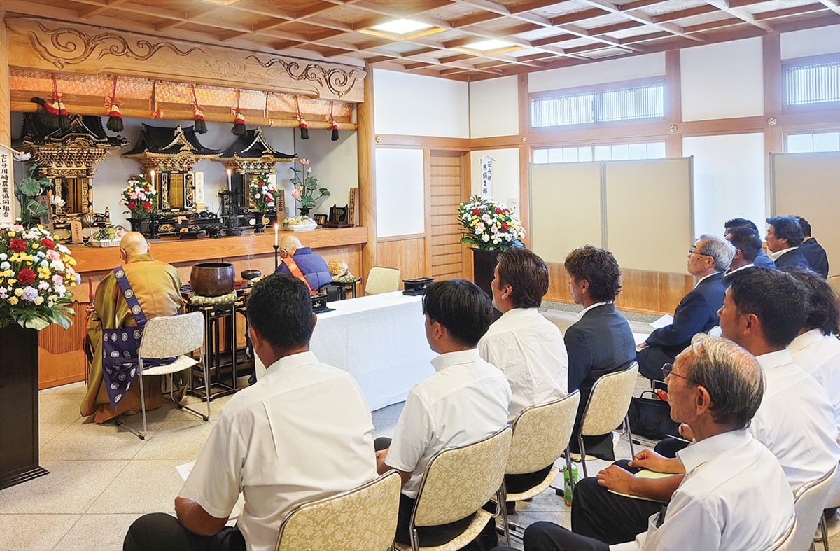 馬絹地区の花卉(かき)生産者らが8月17日、花の命に感謝し慰める「花供養祭」を泉福寺で行った。