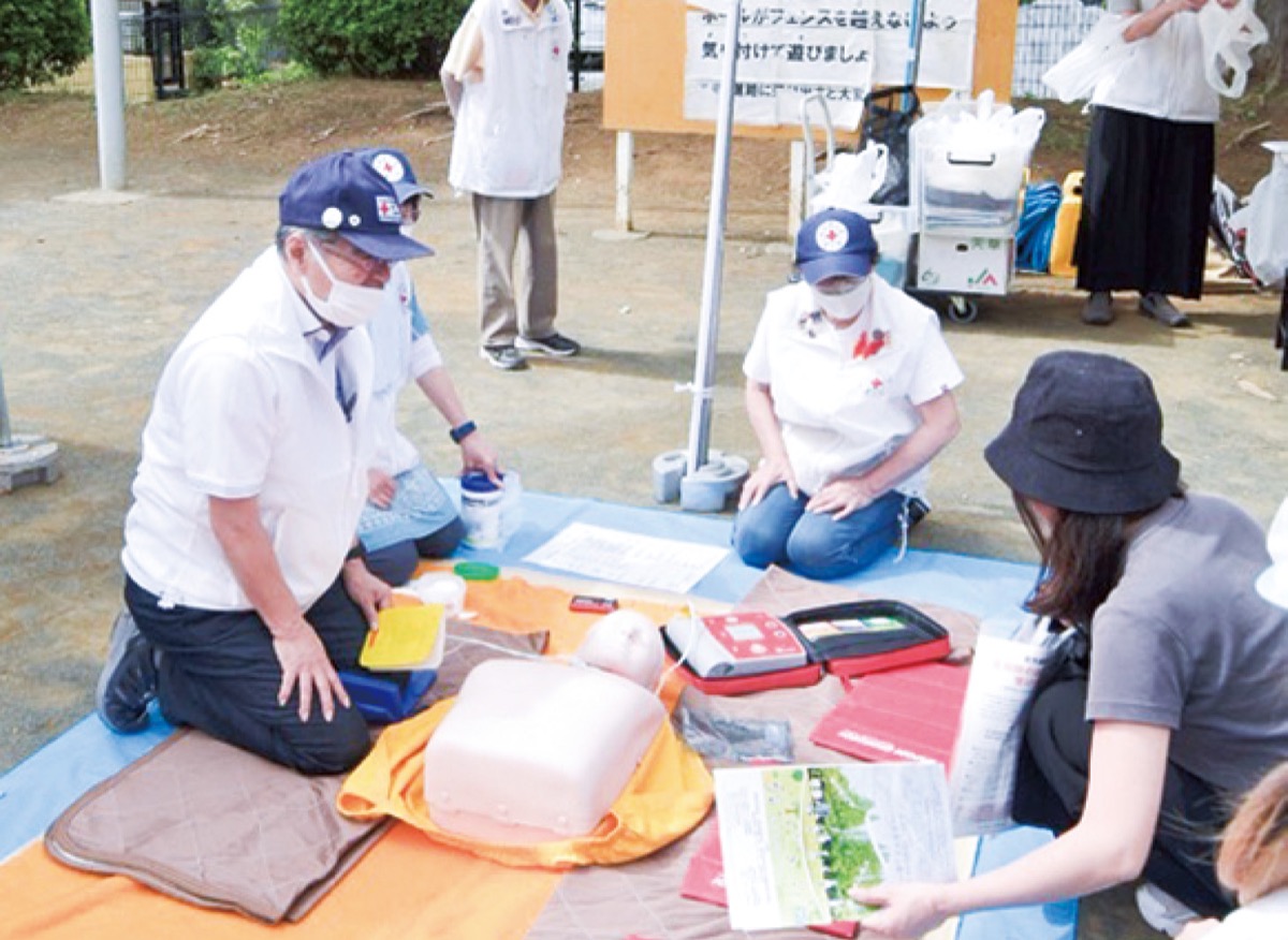 また同時開催となった宮前区防災フェアでは、災害時に役立つ知識を楽しく学びながら身につけてもらおうと、応急救護や水消火器の体験ブースが設けられ、災害時のさまざまな対策について紹介していた。