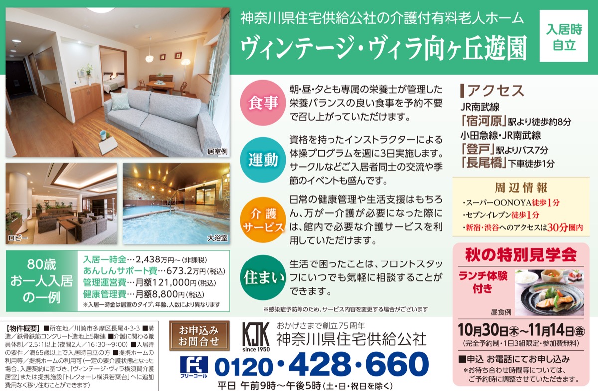 神奈川県住宅供給公社の介護付有料老人ホームヴィンテージ・ヴィラ向ヶ丘遊園(入居時自立)