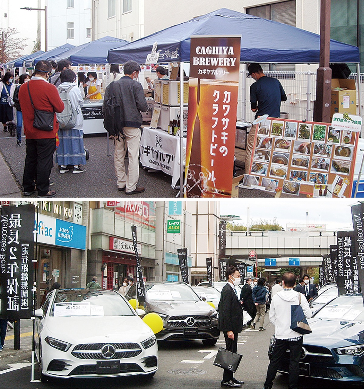 クラフトマーケット当日、中央広場では恒例の共催イベント「ベンツ認定中古車展示会」を実施。運転席に座っての写真撮影もできるので、子どもにも大人気の企画となっており「ぜひご家族でお越しください」と来場を呼び掛けている。