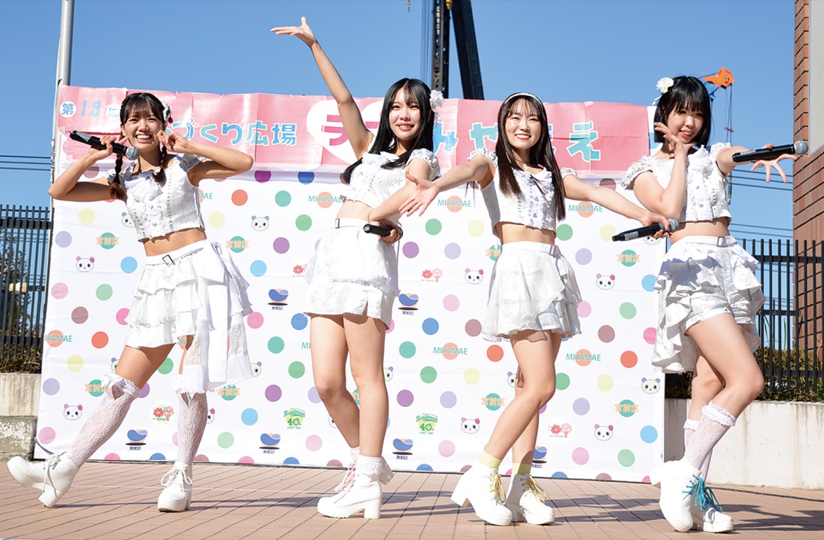宮前区役所のロビーを会場に、毎月1回開催されている無料の音楽コンサート「みやまえロビーコンサート」。当日はコラボ企画として川崎市公認のご当地アイドル「川崎純情小町☆」の特別コンサートも行われ、特設ステージに登場した4人は持ち歌を披露して会場を盛り上げた。
