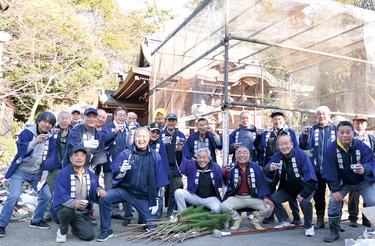 境内には地域住民ら約300人が駆け付け、氏子たちが焼いた餅がふるまわれた。氏子会会長の村木健一さんは「今年の正月は干支『午』にあやかってか、区内外から多くの人出があった。どんど焼きの火で焼いた餅を食べて、健康になってもらいたい」と話した。