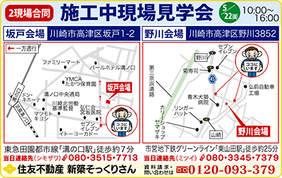 そんな新築そっくりさんのリフォーム術を実際に目で見て体感するチャンスが、5/22(日)に高津区坂戸・野川の2会場で行われる『施工中現場見学会』。午前10時〜午後4時。予約不要。