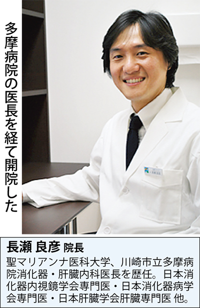 院長の長瀬良彦氏は聖マリアンナ医科大学、川崎市立多摩病院の消化器・肝臓内科医長を経て同院を開院。地域密着の医療を目指している。「一般内科から消化器、肝臓、内視鏡に特化した治療まで、患者様の生活の質を第一に考えるホームドクターとして地域に根ざした医療を提供します」