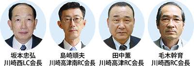 ●川崎高津南RC ▽会長/島崎順夫 ▽副会長/持田光幸 ▽幹事/大島成元 会長エレクト/坂田重男