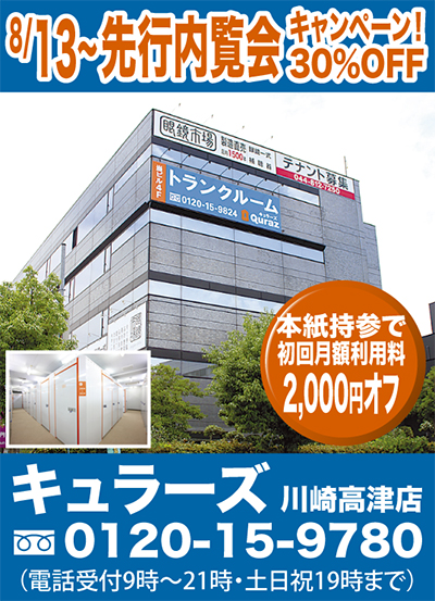 「気が付いたらモノでお部屋がいっぱい…、なんとかしたい!」という人に朗報。話題の最新型トランクルーム「キュラーズ川崎高津店」が8月25日にオープンする。