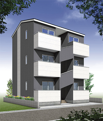 同社は「土地が狭い」「予算が限られる」「収益性を上げたい」といった土地所有者のニーズに合わせ3階建てアパートを開発した。