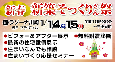 長年住み続けてきたわが家を、建替なしで新築同様に甦らせる独自の工法が人気の住友不動産(株)「新築そっくりさん」。そんな同社が1月14日(土)・15日(日)、ラゾーナ川崎5Fプラザソルで「新春!新築そっくりさん祭」を開催する。時間は午前10時30分〜午後6時。