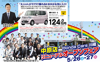 「もっと身近に、もっと頼れるディーラーに」―ホンダカーズ川崎 中原店があす5月26日(土)、リニューアルオープンする。それを記念して26日、27日(日)の両日は親子で楽しめるイベントやプレゼントが盛りだくさんの特別フェアを開催する。
