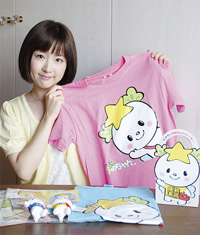 区内久本在住の北島茉也さん(22)がデザインした陸前高田市復興応援マスコット「たかたのゆめちゃん」が、高津区民祭をはじめ全国の夏祭りに登場し、人気を集めている。「夢☆キャラ」として現地NPO法人が募集した同キャラクターのグッズはチャリティ販売され、被災地の復興支援に役立てられる。