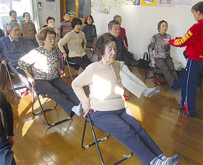 「貯筋運動」は、東京大学名誉教授で国立鹿屋体育大学学長・福永哲夫氏による研究で生まれたプログラム。主に、自立した生活を営むことができる筋力を長く維持することを目的としている。科学的・医学的根拠に基づいた運動法は、高齢者に適している。
