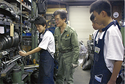 大浪さんは昨年、金属ヘラ絞りにおいて市内最高水準の技術を持つ職人として、市から「かわさきマイスター」に認定されている。今年、同校からの生徒の受け入れ要請を快諾し、同社での職業体験が初めて実現した。
