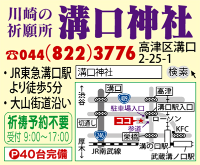 男児は3歳と5歳、女児は3歳と7歳に神社に参拝して、無事の成長に感謝し、将来の幸福、健康を祈願する七五三詣。溝口神社には毎年、大勢の家族がお参りしている。七五三詣は12月初旬まで受け付け。