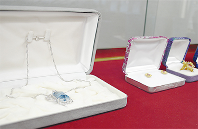 希望者には、専属のデザイナーによるネックレス・ブローチ・ペンダント・イヤリング・ブレスレット・タイタックなどのアクセサリーに加工も行う(ただし別途加工費)。