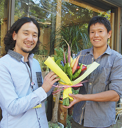 区内で農業を営む下作延在住の木所大輔さん(33)が宮前区の生花店経営、加藤智之さん(32)と「野菜のブーケ」づくりを始めた。色鮮やかな木所さんの野菜を生花のプロがアレンジメントした地元発の新商品で農業をPRする。