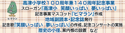 その後は、各学年が『高津小 笑顔いっぱい 夢いっぱい』をスローガンに「おめでとう高津小」や「学校、友達」「高津の好きなところ」「現在の自分」「未来」などのテーマに合わせて練習を重ねた演技や合唱を披露した。また、同校の校庭に立つヒマラヤ杉をイメージしたマスコットキャラクターの「ヒマラン」も登場した。子ども達の真剣な表情と息の合った演技に会場からは盛大な拍手が送られ、涙を流す人も見られた。