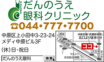 武蔵新城駅から徒歩3分の『だんのうえ眼科(檀之上和彦院長)』は一般眼科の診療はもちろん、大学病院などで使用される最新の医療機器を用いた、白内障・眼瞼下垂・網膜硝子体などの日帰り手術や、話題の近視矯正治療(オルソケラトロジー、ICL)、小児眼科(斜視、弱視、近視治療)にも力を入れている。