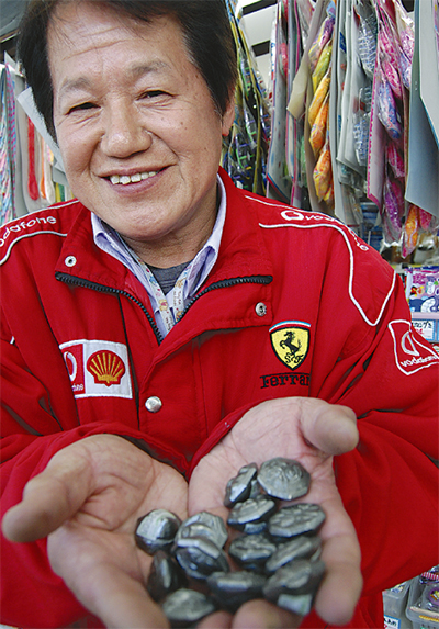 「うちはベーゴマ日本一の店なんだ」。そう豪語するのは、宮田守さん(62)。経営しているのはコンビニエンスストア・ファミリーマート宮田新作店だ。