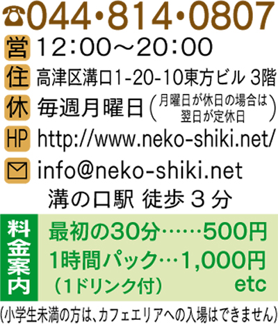 溝口にある話題の「猫式」は随時里親を募集中。「猫ちゃんと一緒に遊びたい方、ぜひお越しください」