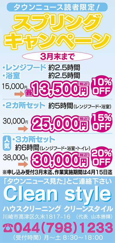 ハウスクリーニングのプロ『クリーンスタイル』では本紙読者限定の「スプリング大掃除キャンペーン」を実施中。トイレや浴室などの水周りをきれいにして、新たな気持ちで春を迎えたい人にお勧めの企画だ。