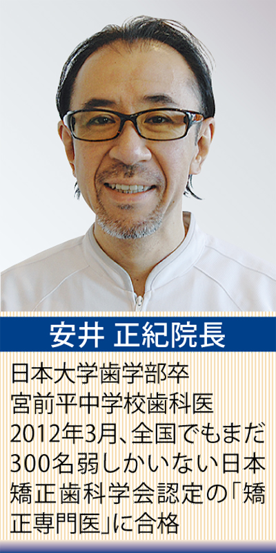 「矯正治療は早期に始めた方が良いと言われていますが反対咬合でなければ、乳歯と永久歯が混ざっている混合歯列の状態の9〜11歳頃に始めるのが好ましいでしょう」と安井院長。子どもの成長に合わせて顎の大きさも変化するため、その変化を考えながら治療計画を設定していくという。