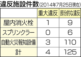 また公表対象の3項目以外にも、非常口付近に物品が置いてあるなどの消防法違反も多く見られるといい、同課では「そうした違反施設の事業者らには、即時改善などの指導を行っていき、防火に関する自主管理を徹底してもらう」としている。