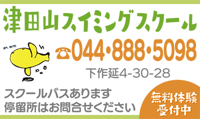 津田山幼稚園付属の津田山スイミングスクールは、小学生クラスと幼児クラス(水)(土)の会員を募集している。