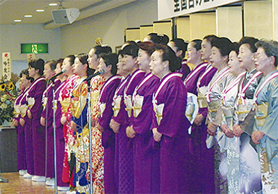 同会の永年在籍会員を表彰したほか、昨年11月の全国大会で22年ぶりの優勝を果たした紫虹会メンバーらが美声を披露。懇親会では、以前から同会と交友がある女優の五大路子さんが駆け付け、節目の年を祝った。
