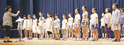 県内トップレベルの実力を誇る坂戸小学校合唱団は現在、「第82回NHK全国学校音楽コンクール」(Nコン)に向け、元気な歌声を響かせながら練習に励んでいる=写真。