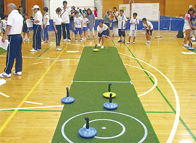 高津地区スポーツ推進委員会主催の第1回ユニカール大会が7月26日、高津スポーツセンターで開かれた。ユニカールとは、カーリングのようにカーペットの上でストーンを滑らせ円形の目標地点に近づけることを競うスポーツ。