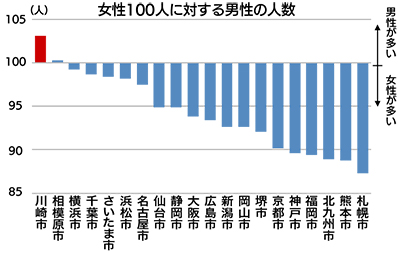 川崎市は男性割合が最も高い