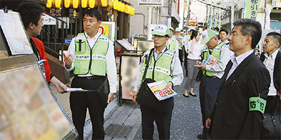 公共の場での客引きや勧誘行為を取り締まる「川崎市客引き行為等の防止に関する条例」が施行されたのを受け、高津警察署が5月13日、溝口駅前商店街で条例施行を告知するキャンペーンを行った。市内で2番目に客引きが多いという溝口駅周辺。今後は取り締まりを強化し、改善を図っていくという。