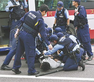 高津警察署と中原警察署は6月27日に、東急トランセと協働して同社の高津営業所でバスジャックを想定した対策訓練を行った。訓練は2019年のラグビーW杯や20年の東京五輪・パラ五輪競技大会で起こる可能性のあるテロなどを見据えたもの。今回初めて高津署と中原署の合同で行われ、東急トランセの職員など合計約75人が参加した。