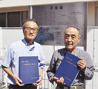 旧平瀬川と中原堰の研究は2005年に旧平瀬川・中原堰研究会(現在28人が所属)が発足してから07年の自費発掘など精力的に行われてきたが、中心的な研究者だった平井岩男さんが6年ほど前に亡くなってからは活動が下火になっていた。しかし15年に堰が建設されて100年になるのを前に、それまでの研究をまとめようと研究会のメンバーが再結集。慣れない作業のため1年での完成を目指した編集は3年かかったが、50回に上る打ち合わせの結果、内容は古文書の文章を含むなど高度なものになった。編集に関わった中原区在住の井上弘明さん(71)は「平瀬川を調べた論文はいくつもあるが、それぞれのストーリーにつながりがなく、まとめるのが大変だった」と話す。