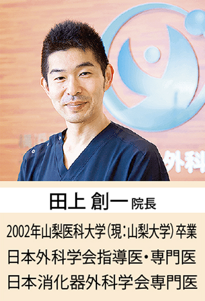 外科医として15年の経験を持つ田上創一院長は、鼠径ヘルニアについて中高年の男性や筋肉の衰えた女性などに多いと説明。「脱腸しても初期は自然と元に戻ることも多く、放置する人が多数います。しかし、自然治癒はしません。脱腸が戻らなくなれば、血流が途絶え腸管が壊死し、命の危険もある緊急手術となります」と警鐘を鳴らす。
