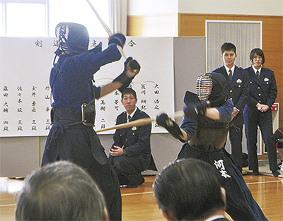 当日は剣道、柔道でそれぞれ12人の若手を中心とした署員が勝ち抜き試合に臨んだ。剣道では気迫のこもった打ち合いが繰り広げられ、技が決まると観客からは拍手が巻き起こった。また、柔道では投げ技が決まって一本の判定が出ると、大きな歓声が上がった。