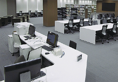 リニューアルされた図書館はものづくり技術を支える機能に特化した「ものづくり情報ライブラリー」をテーマに、これまでの蔵書に加え、研究者や技術者にニーズの高い「IEEE」や「SCOPUS」という電子ジャーナルを公共図書館として全国で初めて導入。また、約19000冊に及ぶ国内屈指の社史コレクションを揃える。