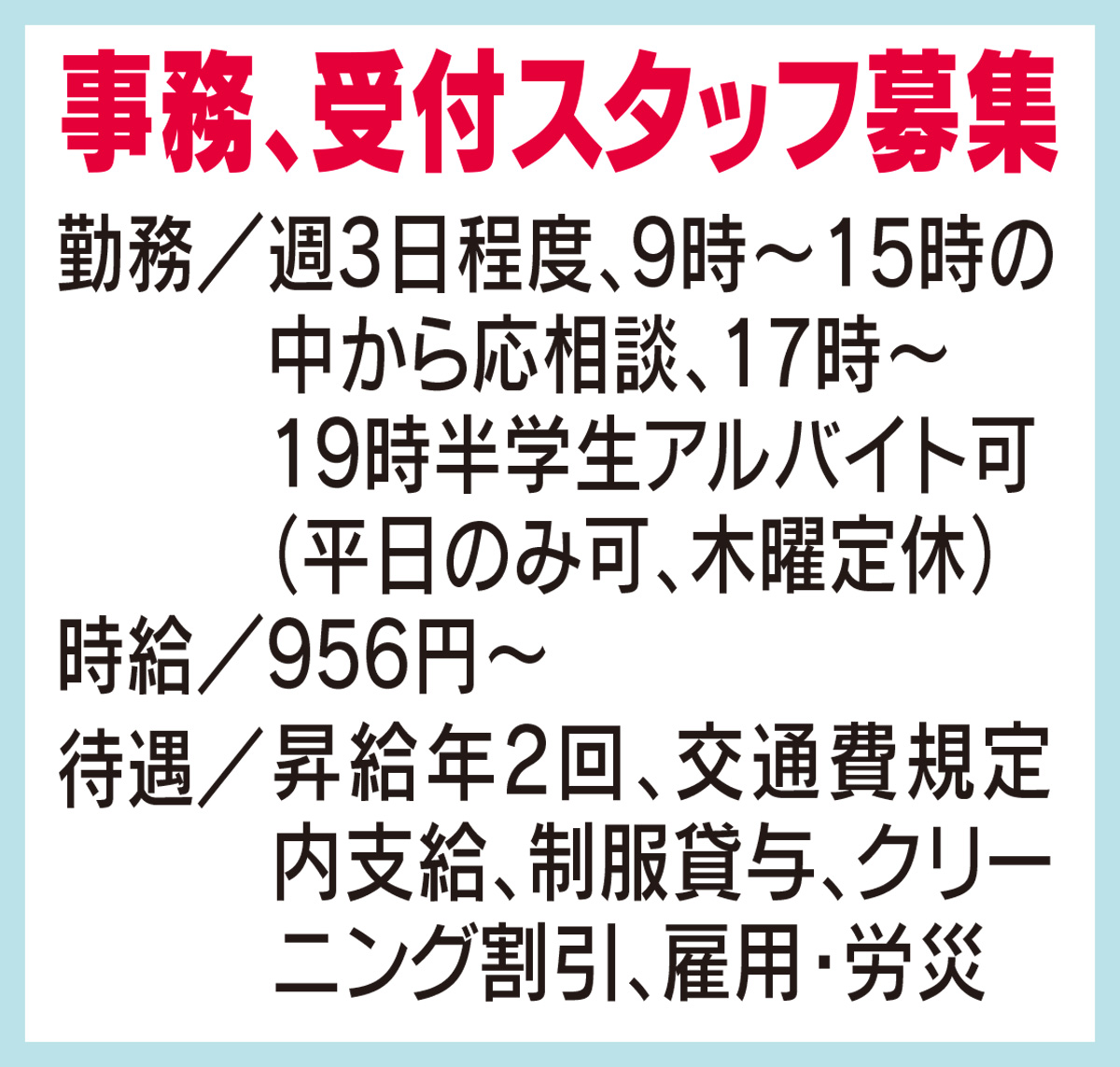 パソコン入力と軽作業/店舗受付 末長・久本