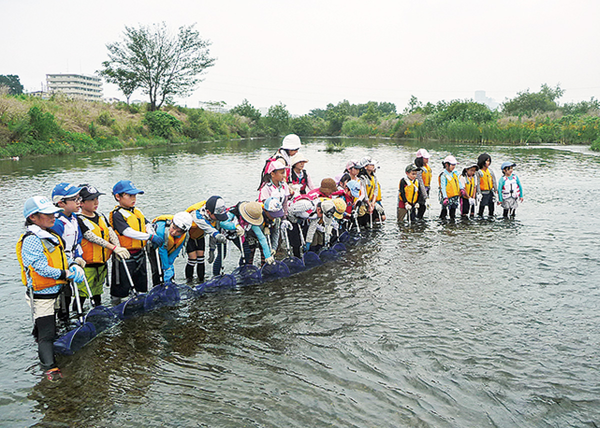 多摩川の中流に生息している生き物を探し観察することで、水辺の環境を調べる教室。昨年はモクズガニ、テナガエビ、外来種のアメリカザリガニといった甲殻類、ギンブナ、ウナギ、マルタなどの魚類のほか、コヤマトンボ(ヤゴ)やオオシオカラトンボ(ヤゴ)といった昆虫類が発見されている。
