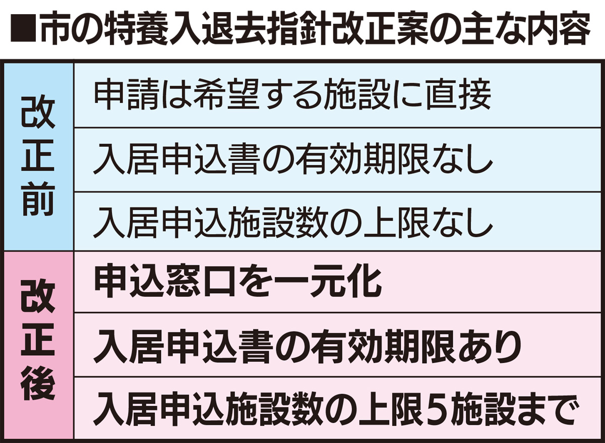 一方、特養側では「窓口の一元化で入居希望者が施設を訪問する機会が減るため、サービス内容など施設の特色の十分な伝達が課題」と懸念を示す。市内特養の従業員の一人は「個室と大部屋でも利用料が異なる。費用だけで判断されてしまう可能性もある」と話す。