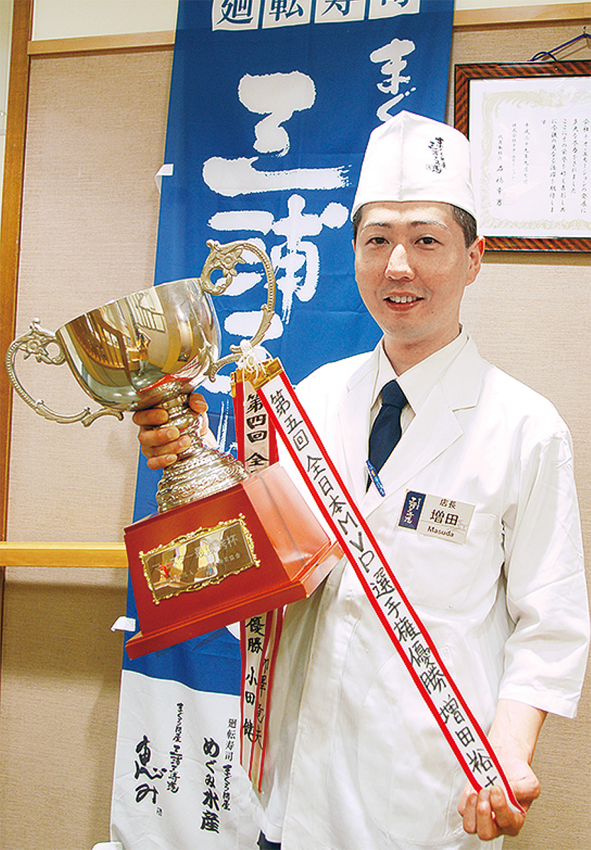 グルメ系回転寿司の日本一を決める「第5回全日本回転寿司MVP選手権」(一般社団法人日本回転寿司協会主催)が6月末に都内で開催され、「まぐろ問屋三浦三崎港マルイファミリー溝口店」の店長、増田裕士さん(35)が総合優勝した。