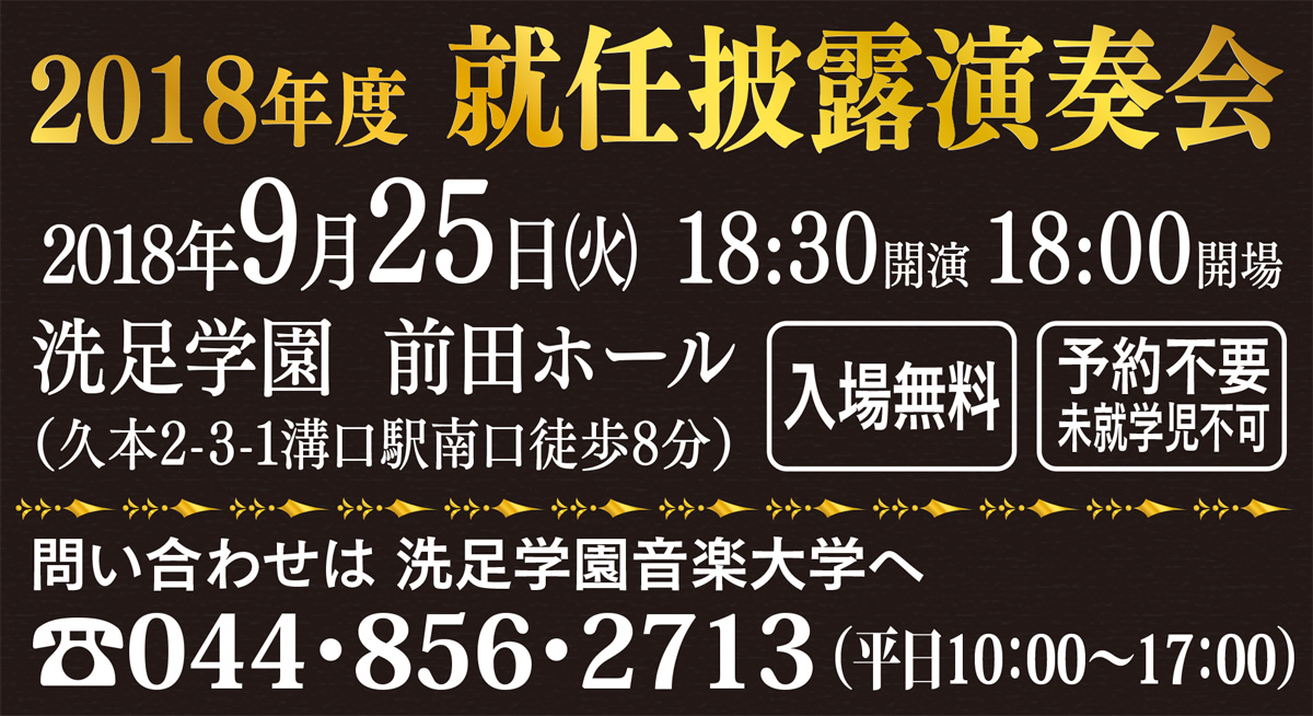 毎年恒例の洗足学園音楽大学「就任披露演奏会」が9月25日(火)、同大学の前田ホールで開催される。